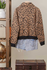 Leopard print zip up jacket with denim details.