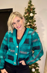 Super soft cardigan with buttons along the front and the perfect coloring for the holiday season.