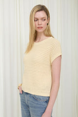 The Better Days sweater top comes in black or butter yellow. This sheer crew neck sweater styles great with jeans or leggings.