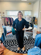 This is sold as a set, the top has a relaxed style fit with a kangaroo pocket and half zip.