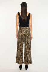 Tilly Ultra High Rise Wide Leg Jean. Made from a corduroy material this style is guaranteed to be soft and flattering. In a beautiful leopard print. This style has a wide waistband, no distress, dart details in the front and back, and front patch pockets.