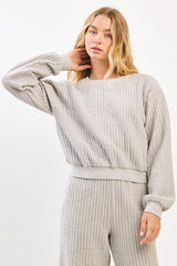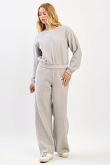 Trendy ribbed set in an all over Heather gray color. This set comes with the top and bottoms.