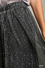 Beautiful skirt with Pleats of Shimmer. Midi Skirt has Elastic Waistband and a lining underneath. This midi skirt will glisten where everyone go.