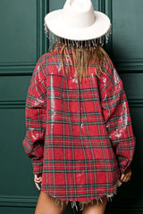 This attractive clear sequin vintage plaid christmas shirt is very inviting. Button down clear sequin all over takes plaid to the next level. Beautiful Christmas colors in a plaid design.