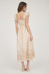 Stunning all over black dress with a rouching detail along the chest, double lined and an eyelet design along the bottom.