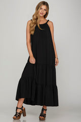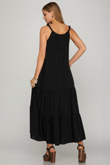 Tiered maxi dress with fabric beaded detailing, front pockets and a relaxed style fit.
