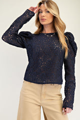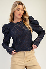 Black top with puff sleeves.