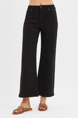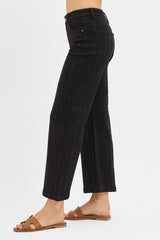 Black risen jeans with a high rise fit and rhinestone detailing in a subtle black.