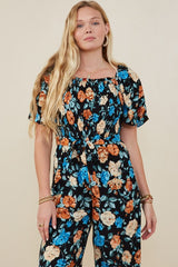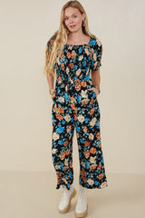 Gorgeous wide-leg jumpsuit. Has a floral print design giving it a romantic look. Self tie closure with a sleek yet comfortable feel.