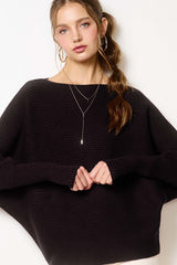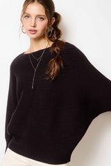 This has a ribbed, soft and stretchy material. This can be pulled off the shoulders and has a relaxed style fit.