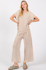 Two piece set with an all over ribbed material and very stretchy and comfortable.