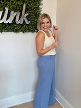 Lay Low Linen Bottom- Blue