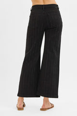 Black risen jeans with a high rise fit and rhinestone detailing in a subtle black.