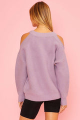 Plain ribbed sweater with cold shoulder detailing. This one comes in light lilac or black.