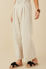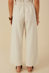 Hey Ladies! These wide-leg texture woven fabric pants are endearing. They have elastic waistband, pleated,front pockets and button closure. Comes in a beautiful oatmeal color, can be worn casual or dressed up. Comfortable wide-leg pants perfect for any day.
