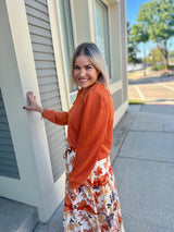 We have it styled with our stand out in orange top.
