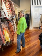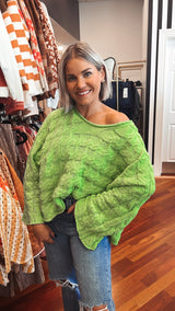 Super soft chenille sweater with a round neck,twisted cable detail and semi-cropped fit.