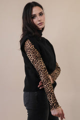 Turtleneck swester that come in black or gray. We love styling these over our long sleeved mesh tops.