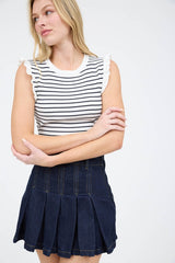 Touch Of Ruffles Striped Top- Black & White