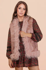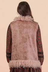 Super funk and funky vest with a suede fabric and fur detailing along the trim. This one styles great with denim and your favorite pair of jeans. This has an open style fit and runs true to size.